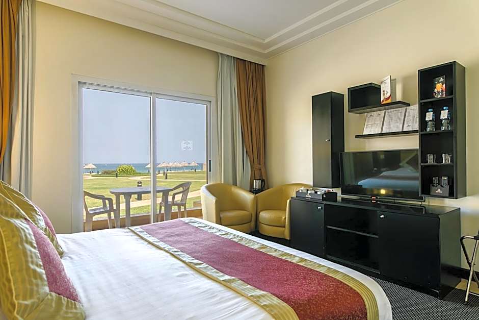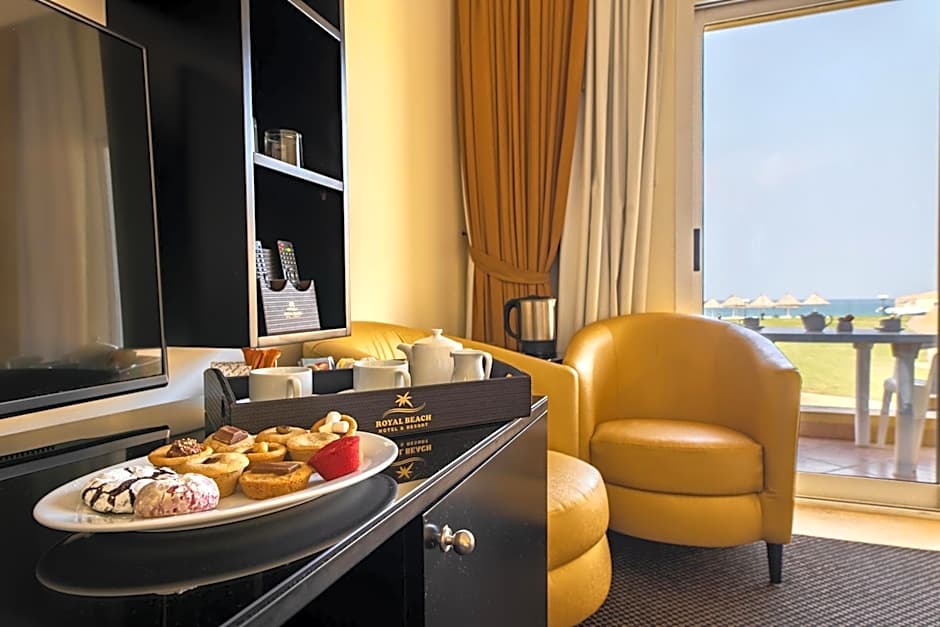 This suite has a separate living room, a lobby, and a balcony with sea views.